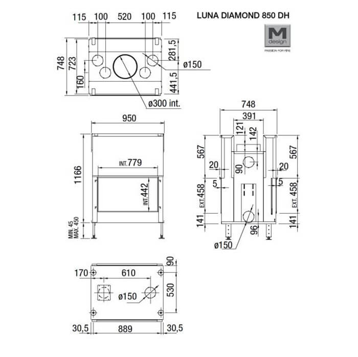 Инструкции, чертежи, документы - Каминная топка M-design Luna 850 DH Diamond (Луна 850 DH Даймонд)