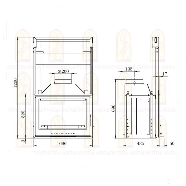 Инструкции, чертежи, документы - Каминная стальная топка Мета Эльба 700П