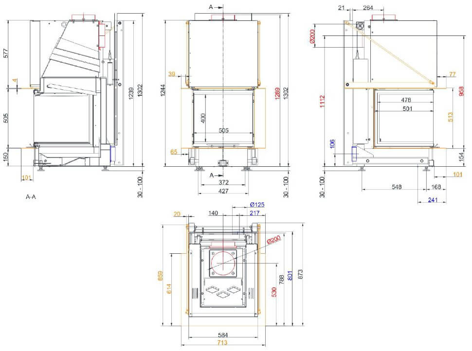- Диаметр дымохода, мм 200