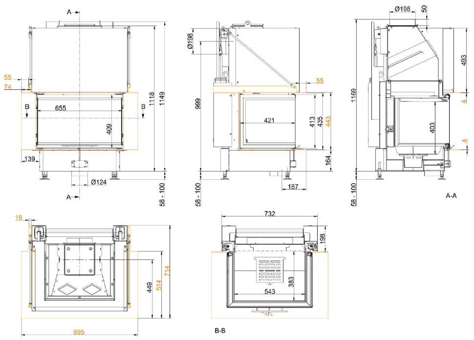 Каминная топка Brunner Panorama-Kamin s-fire 42/42/66/42