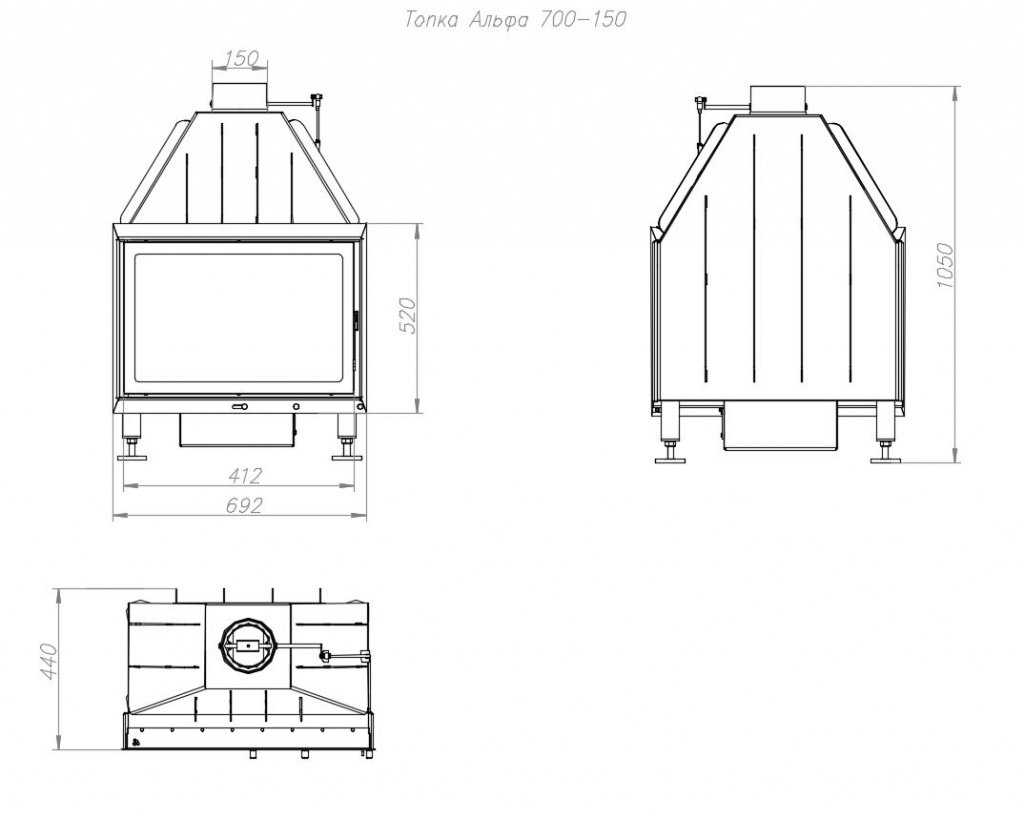 Инструкции, чертежи, документы - Каминная топка ЭкоКамин Альфа 700 (150мм) В с черным шамотом