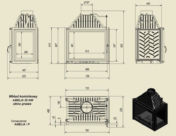 Инструкции, чертежи, документы - Каминная топка Kratki Amelia/P (стекло справа)