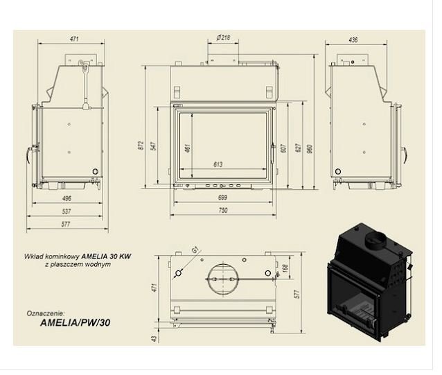 Инструкции, чертежи, документы - Каминная топка Kratki Amelia/PW/30/GLASS (двойное стекло)