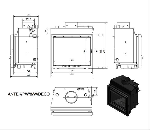 Инструкции, чертежи, документы - Каминная топка Kratki Antek/PW/8/W/Deco