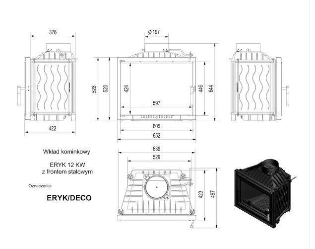Инструкции, чертежи, документы - Каминная топка Kratki Eryk/Deco