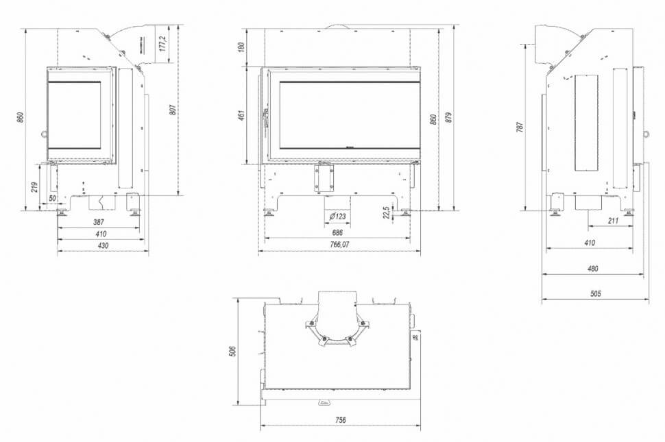 Инструкции, чертежи, документы - Каминная топка Kratki Ildnord Malmo (угловое стекло справа/слева)