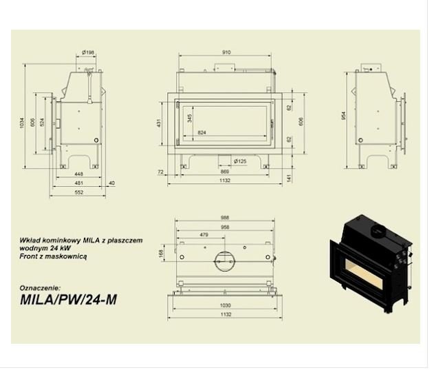 Инструкции, чертежи, документы - Каминная топка Kratki Mila/PW/24/GLASS (двойное стекло)