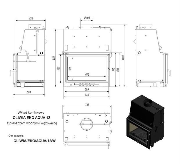 Инструкции, чертежи, документы - Каминная топка Kratki Oliwia/EKO/AQUA/12/W (змеевик)