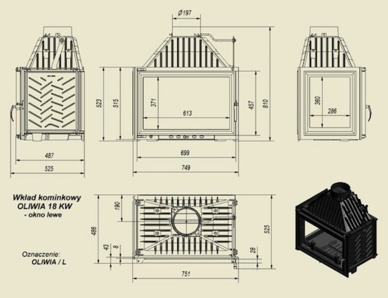 Инструкции, чертежи, документы - Каминная топка Kratki Oliwia/L (стекло слева)
