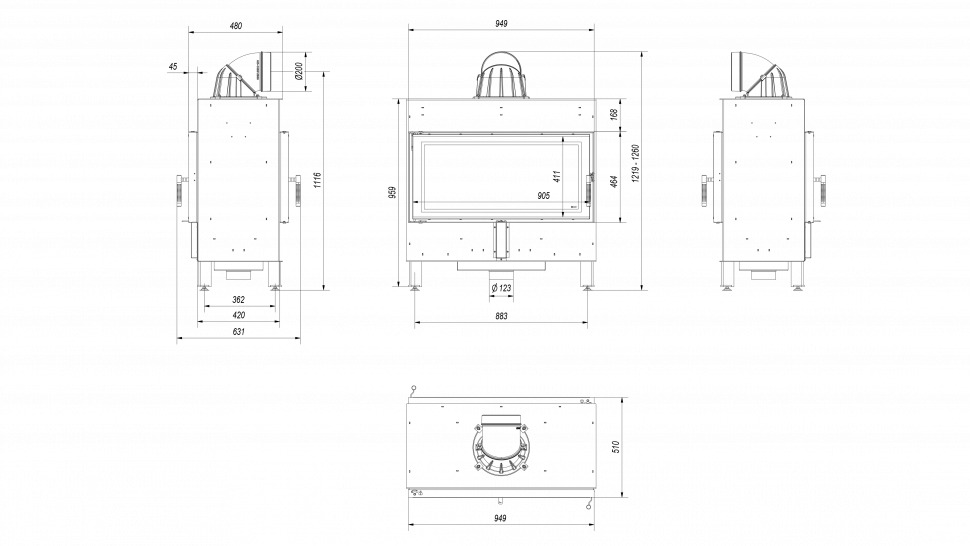 - Диаметр дымохода, мм 200