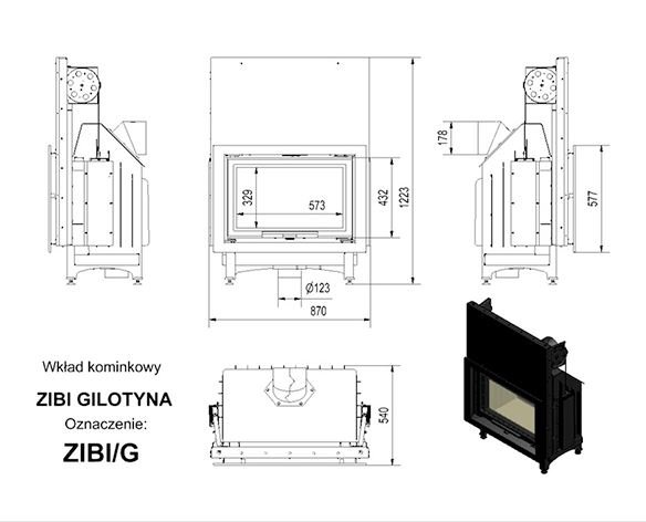 Инструкции, чертежи, документы - Каминная топка Kratki Zibi/G (гильотина) (керамич. футеровка)