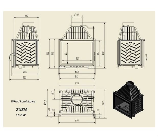 Инструкции, чертежи, документы - Каминная топка Kratki Zuzia