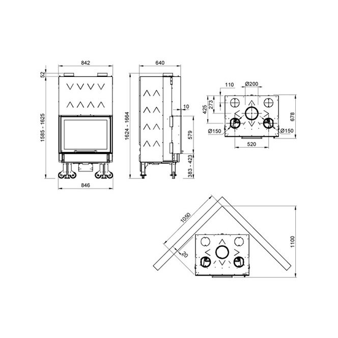 - Диаметр дымохода, мм 200