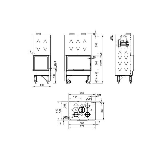 - Диаметр дымохода, мм 200