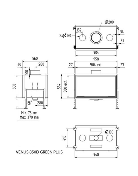 Инструкции, чертежи, документы - Каминная топка M-design Venus 850 D Green Plus (Венус 850 D Грин Плюс)