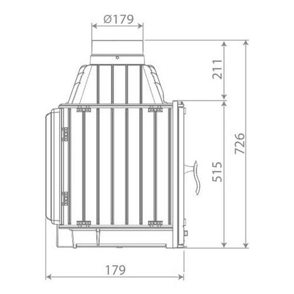 - Диаметр дымохода, мм 180