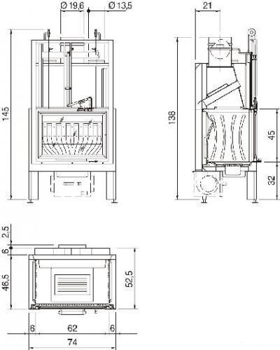 Инструкции, чертежи, документы - Каминная топка Palazzetti Ecomonoblocco 66 Frontal