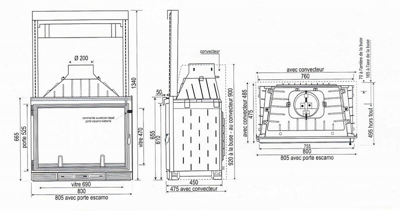 Инструкции, чертежи, документы - Каминная топка Seguin Super 8 с гильотиной, с двойной подачей воздуха