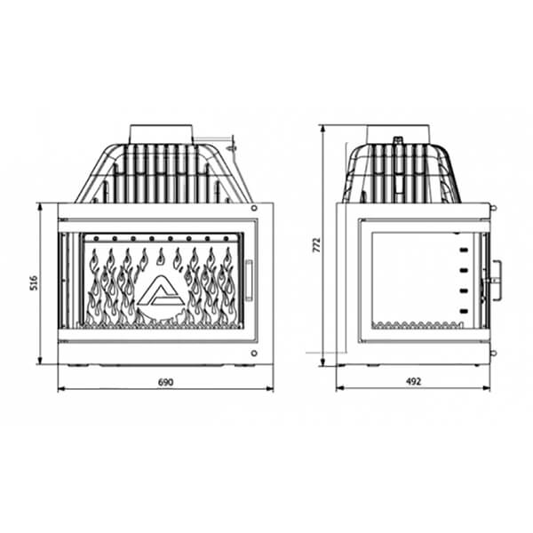 Еще одной отличительной особенностью каминных топок Kawmet является наличие встроенной шиберной заслонки с блокиратором дверцы.