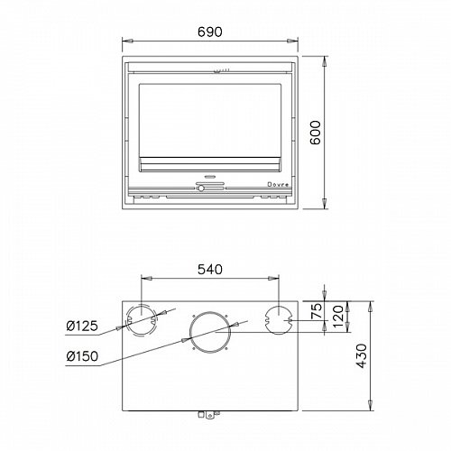 Инструкции, чертежи, документы - Каминная топка Dovre 2520S/B