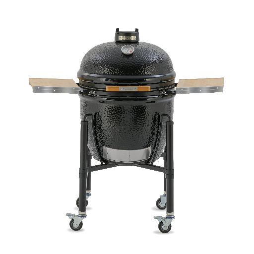 • Защитный чехол, чугунная решетка, керамический камень для выпекания пиццы, электрический вертел, кочерга, подставка под курицу, подставка для ребрышек, сковорода Wok, щетка для чистки решетки, тележка для гриля Buggy, стол из оцинкованной стали с колесиками (• Monolith LeCHEF ONE.66 — сокращенная версия Monolith LeCHEF PRO 2.0