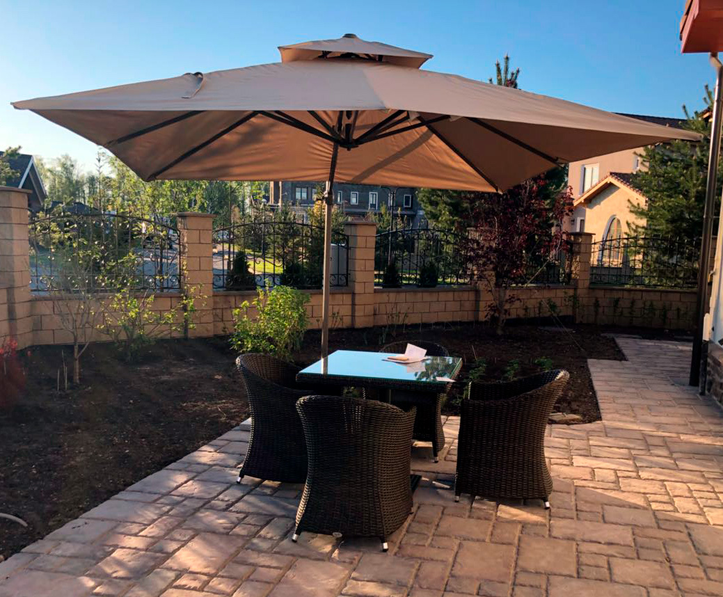 Зонт с боковой стойкой, механизмом наклона купола 6 уровней и системой поворота на 360 градусов. Размер 300*300. Алюминиевый каркас.