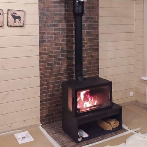 Печь камин ставится на подготовленную поверхность. Изоляционная стена выполнена из керамической плитки.
